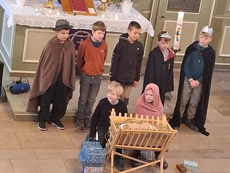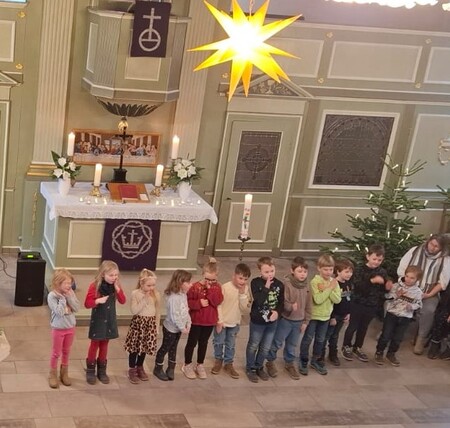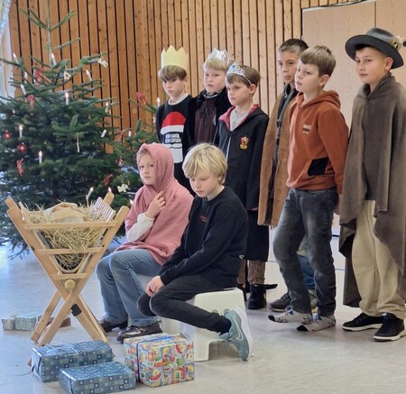 Am letzten Schultag vor den Ferien erlebte die Schulgemeinschaft eine besinnliche und festliche weihnachtliche Feierstunde. Alle Klassen hatten einen Beitrag vorbereitet. Klasse 4 zeigte den stimmungsvollen Lichtertanz, die Klassen 1, 2a und 2b trugen Lieder vor und die Klasse 3 führte ihr Theaterstück auf, das sie bereits bei der Gemeindeweihnachtsfeier am zweiten Advent gezeigt hatte. Es wurde gemeinsam zur Orgel gesungen und das Kollegium sprach gute Wünsche aus. Wir wünschen allen frohe Festtage und gute Erholung!