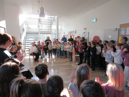 Das intensive Proben hat sich gelohnt: Die Kinder aus Klasse 3 brachten das Theaterstück "Roboter an Weihnachten" sehr erfolgreich zur Aufführung und ernteten verdient großen Applaus. Gemeindebürgermeister Herr Ratzka bedankte sich und äußerte die Hoffnung, dass die Schule auch nächstes Jahr wieder die Feier bereichern wird. Die Schulgemeinschaft kann das Theaterstück bei der Weihnachtsfeier am letzten Schultag vor den Ferien in der Kirche ansehen.